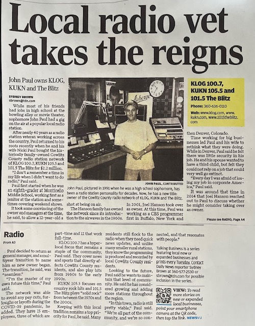 People in Cowlitz, Columbia and Wahkiakum Counties are listening, and they depend on our three stations! KUKN, KLOG and 101.5 The Blitz has swept all three places in the Best Radio Stations Category in the Lower Columbia Area. KUKN won the category and KLOG and The Blitz were both finalists in The Daily News “Best of” Promotion.